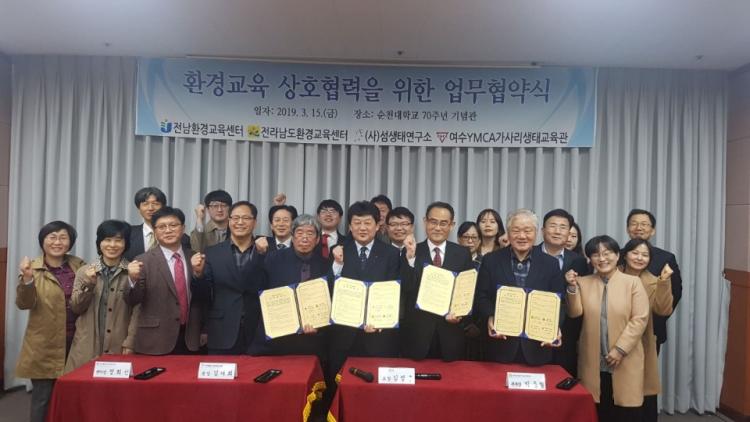 [ÅåÅå´º½º]Àü³²È¯°æ±³À°¼¾ÅÍ(¼¾ÅÍÀå Á¤È¸¼±)°¡ 3¿ù 15ÀÏ(±Ý) ¿ÀÀü ¼øÃµ´ëÇб³ 70ÁÖ³â±â³ä°ü¿¡¼ 30¿© ¸íÀÇ È¯°æ±³À°°ü°èÀÚ°¡ Âü¼®ÇÑ °¡¿îµ¥ Àü³²ÀÇ Áö¿ªÈ¯°æ±³À°¼¾Å͵é°ú ¾÷¹« Çù¾àÀ» ü°áÇß´Ù.