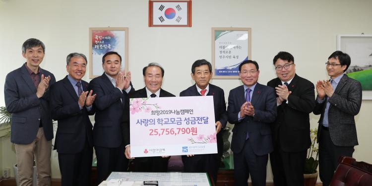 ½Ã±³À°Ã»Àº 2018³â 11¿ù1ÀϺÎÅÍ 2019³â 2¿ù28ÀϱîÁö ¡®Èñ¸Á 2019 »ç¶ûÀÇ Çб³¸ð±Ý Ä·ÆäÀΡ¯À» ÁøÇàÇØ À̹ø ±â±ÝÀ» ¸¶·ÃÇß´Ù. ¸ðÀÎ µ·Àº ±¤ÁÖ»çȸº¹Áö°øµ¿¸ð±Ýȸ¸¦ ÅëÇØ ±¤ÁÖÁö¿ª Àú¼Òµæ°¡Á¤ Áß‧°íµîÇлýµé ±³º¹±¸ÀÔºñ·Î Áö¿øµÉ ¿¹Á¤ÀÌ´Ù.