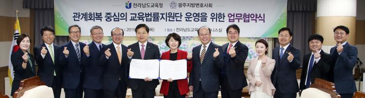 Àü¶ó³²µµ±³À°Ã»(±³À°°¨ Àå¼®¿õ)Àº 3¿ù 21ÀÏ(¸ñ) ¿ÀÈÄ Àü¶ó³²µµ±³À°Ã» ºñÁî´Ï½º½Ç¿¡¼ ±¤ÁÖÁö¹æº¯È£»çȸ(ȸÀå ÀÓ¼±¼÷)¿Í ¡®°ü°èȸº¹À» À§ÇÑ ±³À°¹ý·üÁö¿ø´Ü ¿î¿µ¡¯ ¾÷¹«Çù¾àÀ» ü°áÇß´Ù.