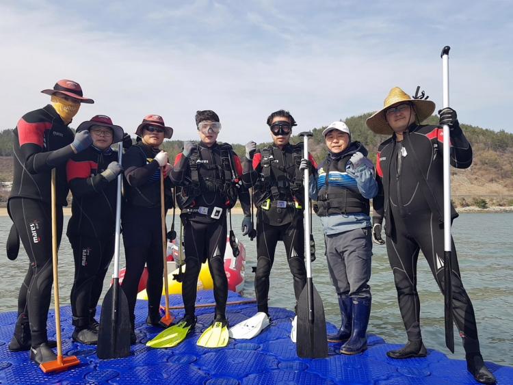 ƯÈ÷ ¹Ù´Ù¿¡ ¼ö·ÃȰµ¿ ¾ÈÀü°æ·Î¸¦ ¼³Á¤ÇØ »õ·Ó°Ô ºÎÇ¥¸¦ ¼³Ä¡ÇßÀ¸¸ç, »ýÁ¸¼ö¿µ ÇÁ·Î±×·¥ ¿î¿µ ½Ã ºÎÇ¥ ¹× ¹ÙÁö¼±¿¡ ºÙ¾îÀÖ´Â ¾îÆÐ·ù¿¡ ÀÇÇÑ ÇǺΠ¼Õ»óÀ» ¹æÁöÇϱâ À§ÇØ ½ºÄí¹ö Àåºñ¸¦ Âø¿ëÇÏ°í µé¾î°¡ ¼öÁß¿¡¼ Á¦°ÅÇÏ´Â ÀÛ¾÷µµ ½Ç½ÃÇß´Ù.