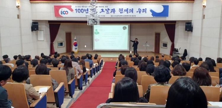 [ÅåÅå´º½º]±¤ÁÖ±¤¿ª½Ã±³À°¿¬¼ö¿ø(¿øÀå ±èµ¿ÀÏ)ÀÌ Æò»ý±³À° ÀÏȯÀ¸·Î ±¤ÁÖ±¤¿ª½Ã±³À°Ã» ±³Á÷¿ø ¹× ½Ã¹ÎÀ» ´ë»óÀ¸·Î 3‧1¿îµ¿ ´ëÇѹα¹ ÀÓ½ÃÁ¤ºÎ¼ö¸³ 100ÁÖ³âÀ» ±â³äÇØ ¡®100³â Àü ±×³¯°ú ÇöÀçÀÇ ¿ì¸®¡¯¶ó´Â ÁÖÁ¦·Î °ø°³Æ¯°À» ½Ç½ÃÇß´Ù.