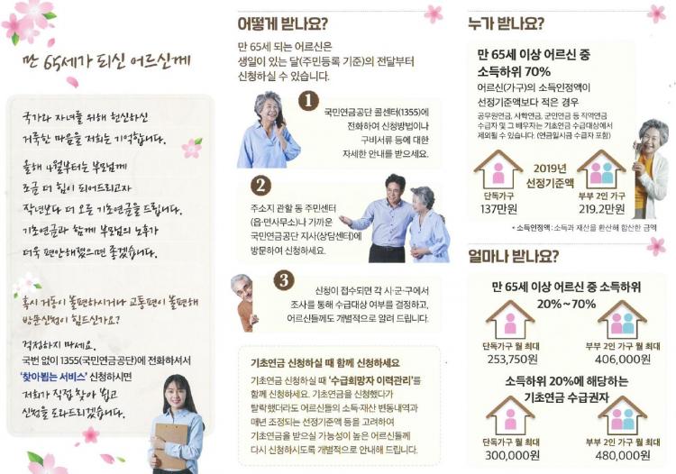 ÇöÀç ±âÃÊ¿¬±ÝÀ» ¹Þ°í ÀÖ´Â ¼ö±ÞÀÚ´Â º°µµ ½ÅûÀ» ÇÏÁö ¾Ê¾Æµµ µÇ¸ç, ¾ÆÁ÷ ½ÅûÇÏÁö ¾ÊÀº ¸¸ 65¼¼ ÀÌ»ó ¾î¸£½ÅÀº ÁÖ¼ÒÁö °üÇÒ À¾¸éµ¿ Áֹμ¾Åͳª °¡±î¿î ±¹¹Î¿¬±Ý°ø´Ü Áö»ç¸¦ ¹æ¹®ÇØ ½ÅûÇÏ¸é µÈ´Ù.