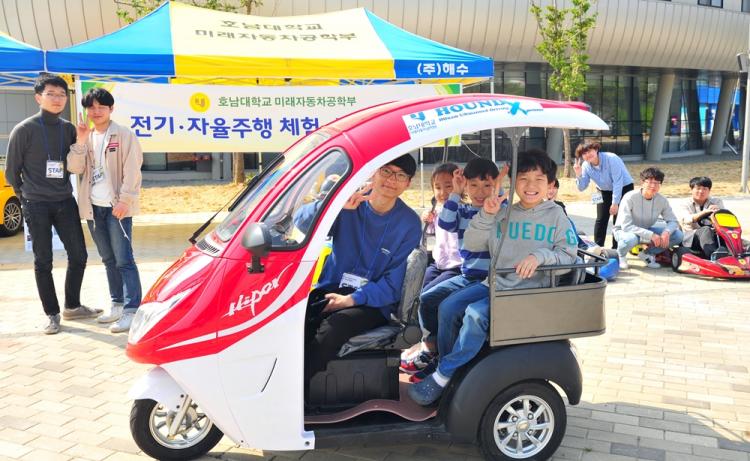 È£³²´ë ¹Ì·¡ÀÚµ¿Â÷°øÇаú(ÇаúÀå Ȳº¸½Â)´Â 4¿ù 20ÀÏ ±¹¸³±¤ÁÖ°úÇаü ¾ß¿Ü±¤Àå¿¡¼ ÀÚÀ²ÁÖÇàÀü±âÂ÷ Àü½Ã¿Í ÇÔ²² ÀÚÀÛÀÚµ¿Â÷ üÇèÀ» Á¦°øÇß´Ù. ¾î¸¥µéÀº ÀÚÀÛÀÚµ¿Â÷¿Í »ï·ûÀü±âÀÚµ¿Â÷ ¿îÀü üÇèÀ» Çϰí, ¾ÆÀ̵éÀº RCÄ«¸¦ Á÷Á¢ Á¶Á¾ÇÏ¸é¼ È£±â½É ÃæÁ·°ú ÇÔ²² Áñ°Å¿î ½Ã°£À» º¸³Â´Ù. ÀÚÀ²ÁÖÇàÀü±âÂ÷ Àü½Ã¿Í ÀÚÀÛÀÚµ¿Â÷ üÇè, RCÄ« üÇèÀº 5¿ù 5ÀÏ ÇÑÂ÷·Ê ´õ ¿¸± ¿¹Á¤ÀÌ´Ù.