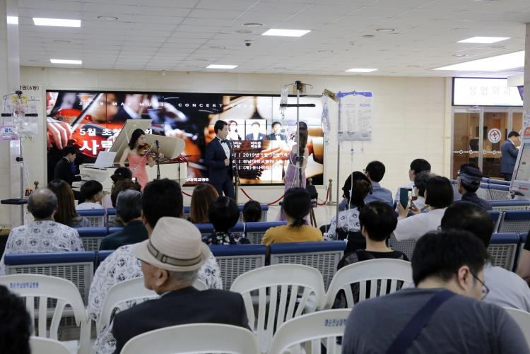 [ÅåÅå´º½º] Àü³²´ëÇб³º´¿ø(º´¿øÀå ÀÌ»ï¿ë)ÀÌ È¯ÀÚ ÄèÀ¯±â¿ø À½¾Çȸ ¡®»ç¶ûÀÇ ²Þ¡¯À» 29ÀÏ º´¿ø 1µ¿ ·Îºñ¿¡¼ °³ÃÖÇß´Ù.