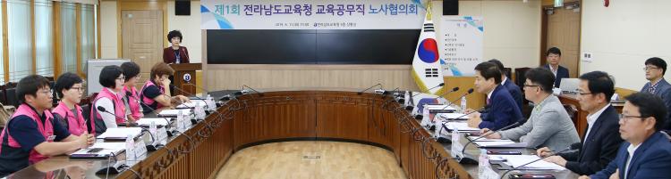 [ÅåÅå´º½º] Àü¶ó³²µµ±³À°Ã»(±³À°°¨ Àå¼®¿õ)ÀÌ 11ÀÏ Ã»»ç 5Ãþ »óȲ½Ç¿¡¼ °ú¹Ý¼ö ³ëÁ¶ÀÎ Àü±¹Çб³ºñÁ¤±ÔÁ÷³ëµ¿Á¶ÇÕ Àü³²ÁöºÎ¿Í ³ë»ç »ó»ý ¹× Çù·ÂÀÇ Ã¹°ÉÀ½À» À§ÇÑ Á¦1ȸ ±³À°°ø¹«Á÷ ³ë»çÇùÀÇȸ¸¦ °³ÃÖÇß´Ù.