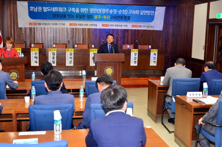 [ÅåÅå´º½º]°æÀü¼± ±¤ÁÖ~¼øÃµ±¸°£ÀÇ °í¼ÓÀüÃ¶È »ç¾÷À» Á¶±â¿¡ ÃßÁøÇϱâ À§ÇÑ ±¹È¸ Åä·Ðȸ°¡ 26ÀÏ ¿ÀÈÄ ±¹È¸µµ¼°ü ¼ÒȸÀǽǿ¡¼ ¿·È´Ù.