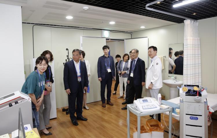 ¹æ¹®´ÜÀº °¢ Áø·á°ú¸¦ ¼øÈ¸ÇÏ¸ç ¼±¼ö¿Í ÄÚνºÅÂÇÁ µî ´ëȸ °ü°èÀÚµéÀ» Áø·áÇϰí ÀÖ´Â ÀÇ·áÁø¿¡°Ô ÀÏÀÏÀÌ ¾Ç¼ö¸¦ ³ª´©¸ç ³ë°í¸¦ Ä¡ÇÏÇß´Ù.