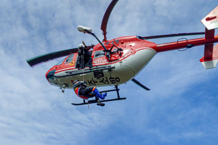 ¸ÕÀú µî¹Ý Áß Ãß¶ôÇÑ µî»ê°´ÀÇ ÈäºÎ°ñÀý »óȲÀ» °¡Á¤ÇØ »ê¾Ç±¸Á¶´ëÀÇ ÇöÀåÃ⵿, ¿È»óÄ«¸Þ¶ó°¡ ÀåÂøµÈ µå·ÐÀ» Ȱ¿ëÇÑ ¿ä±¸Á¶ÀÚ À§Ä¡ ÆÄ¾Ç, ÇöÀå ÀÀ±Þóġ¿Í ½Å¼ÓÇÑ À̼ÛÀ» À§ÇÑ ¼Ò¹æÇï±â ž½Â°ú Çϰ ÈÆ·Ã µîÀ» ÁøÇàÇß´Ù.