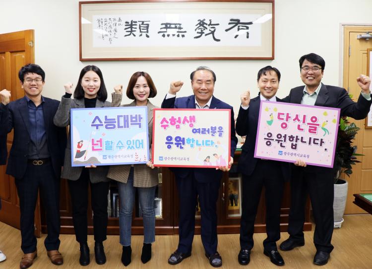 [ÅåÅå´º½º]ÀåÈÖ±¹ ±¤ÁÖ±¤¿ª½Ã±³À°°¨ÀÌ ¼ö´ÉÀ» ¾ÕµÐ ¼öÇè»ýÀ» ÀÀ¿øÇÏ´Â ¼Çѹ®À» ±¤ÁÖ Àüü °íµîÇб³¿¡ ¼ÛºÎÇÏ¸ç ¡°±¤ÁÖ ±³À° °¡Á· ¸ðµÎ°¡ ´ç½ÅÀ» ÀÀ¿øÇÕ´Ï´Ù. ´ç½ÅÀº ÇູÇÑ ±¤ÁÖÀÇ ÀÚ¶ûÀÔ´Ï´Ù.¡±°í ¹àÇû´Ù.