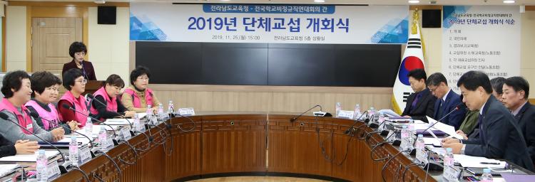 [ÅåÅå´º½º]Àü¶ó³²µµ±³À°Ã»°ú Àü±¹Çб³ºñÁ¤±ÔÁ÷¿¬´ëȸÀÇ(Âü¿©³ëÁ¶: Àü±¹Çб³ºñÁ¤±ÔÁ÷³ëµ¿Á¶ÇÕ, Àü±¹°ø°ø¿î¼ö³ëµ¿Á¶ÇÕ Àü±¹±³À°°ø¹«Á÷º»ºÎ, Àü±¹¿©¼º³ëµ¿Á¶ÇÕ)´Â 25ÀÏ(¿ù) ¿ÀÈÄ µµ±³À°Ã» 5Ãþ »óȲ½Ç¿¡¼ 2019³â ´Üü±³¼· °³È¸½ÄÀ» °¡Á³´Ù.