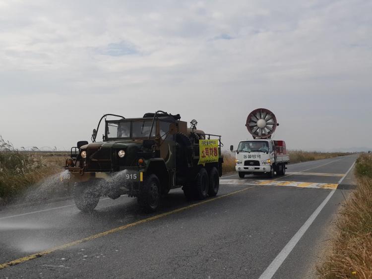 Áö³ 9¿ù17ÀÏ °æ±âµµ ÆÄÁÖ¿¡¼ ÃÖÃÊ ¾ÆÇÁ¸®Ä«µÅÁö¿º´ÀÌ ¹ß»ýÇÔ¿¡ µû¶ó ¿µ¾Ï±º¿¡¼´Â °¡ÃàÁúº´¹æ¿ª»óȲ½ÇÀ» Áß½ÉÀ¸·Î 1°÷ÀÇ °ÅÁ¡¼Òµ¶½Ã¼³°ú 1°÷ÀÇ ¾×ºñÀ¯Åë½Ã¼³ ÅëÁ¦ÃʼҸ¦ ¼³Ä¡ÇÏ¿© Â÷·®¼Òµ¶À» ÁøÇàÇÏ¸é¼ ÃàÇù °øµ¿¹æÁ¦´Ü ¹æ¿ªÂ÷ 4´ë¸¦ ÀÌ¿ëÇØ ¾çµ·³óÀå ÃâÀÔ±¸¿Í ÁÖº¯µµ·Î¸¦ ¸ÅÀÏ ¼Òµ¶ ÇÏ´Â µî ¹æ¿ª¿¡ ÃÑ·ÂÀ» ½ñÀ¸¸é¼ Çѵ·³ó°¡(31³ó°¡/7¸¸6õ¿©µÎ)¿Í ±º¹ÎÀ» ´ë»óÀ¸·Î Àû±ØÀûÀÎ ¿¹¹æ ´ëÃ¥¿¡ µ¿ÂüÇØ ÁÙ °ÍÀ» ´çºÎÇÏ¿´´Ù.
