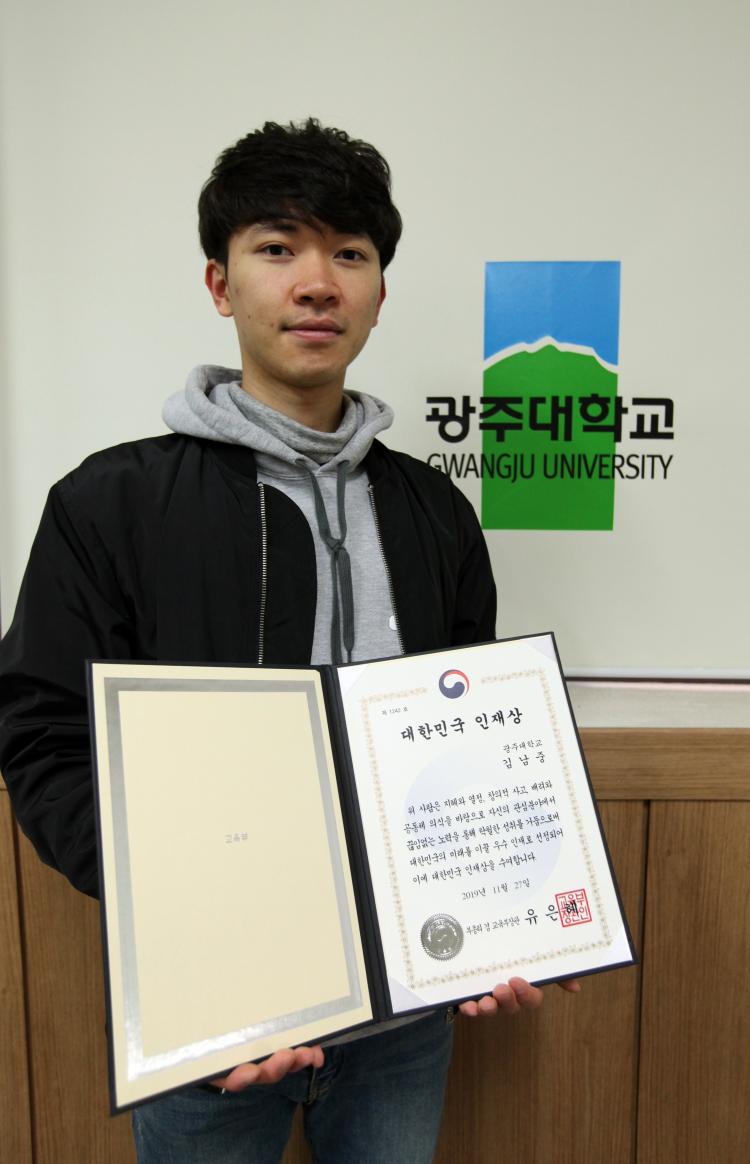 [ÅåÅå´º½º] ±¤ÁÖ´ëÇб³(ÃÑÀå ±èÇõÁ¾)¿¡¼ ¡®ºÒµµÀú¡¯·Î ÅëÇϴ û³âÀÌ ¡®2019 ´ëÇѹα¹ ÀÎÀç»ó¡¯À» ¼ö»óÇß´Ù. ÁÖÀΰøÀº °æÂû¹ýÇàÁ¤ÇкΠ4Çг⿡ ÀçÇÐ ÁßÀÎ ±è³²Áß Çлý.