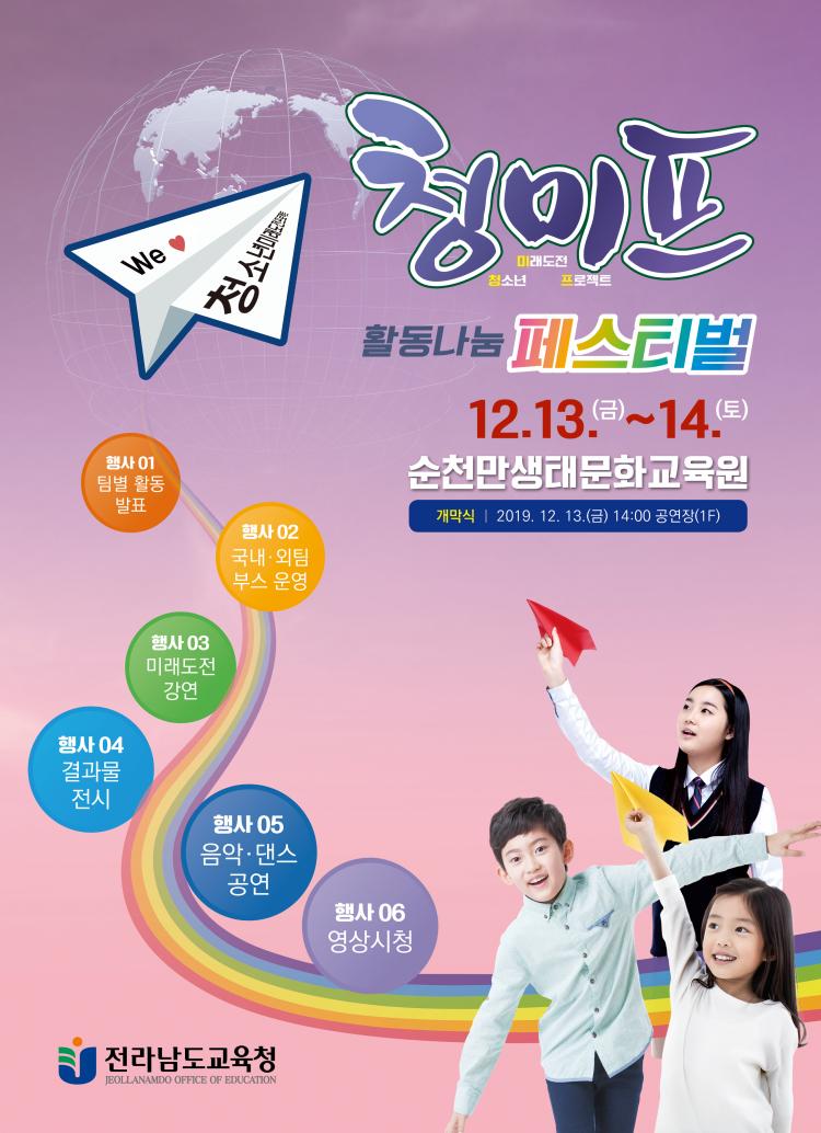 Àü¶ó³²µµ±³À°Ã»Àº ¿À´Â 13ÀÏ(±Ý) ~ 14ÀÏ(Åä) ¼øÃµ¸¸»ýŹ®È±³À°¿ø ÀÏ¿ø¿¡¼ µµ³» Çлý ¹× û¼Ò³â, Çкθð, ±³Á÷¿ø, Áö¿ª¹ÎÀ» ´ë»óÀ¸·Î ¡®2019 û¼Ò³â¹Ì·¡µµÀüÇÁ·ÎÁ§Æ® Ȱµ¿³ª´® Æä½ºÆ¼¹ú¡¯À» °³ÃÖÇÑ´Ù.