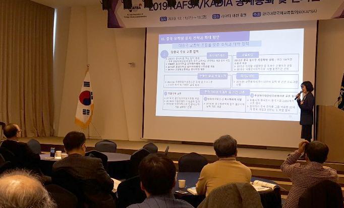 [ÅåÅå´º½º]È£³²´ëÇб³(ÃÑÀå ¹Ú»óö) ±¹Á¦±³·ùº»ºÎ ¼Õ¿ÏÀÌ º»ºÎÀå(Áß±¹¾îÇаú ±³¼ö)Àº 12¿ù 12ÀÏ ´ëÀü ¶ó¸¶´ÙÈ£ÅÚ¿¡¼ ¿¸° ¡®2019KAFSA/KADIA µ¿°è ÃÑȸ ¹× ÄÁÆÛ·±½º¡¯¿¡¼ ±¹Á¦±³·ù ¿ì¼ö»ç·Ê¿¡ ´ëÇÑ ÁÖÁ¦ ¹ßÇ¥¸¦ Çß´Ù.