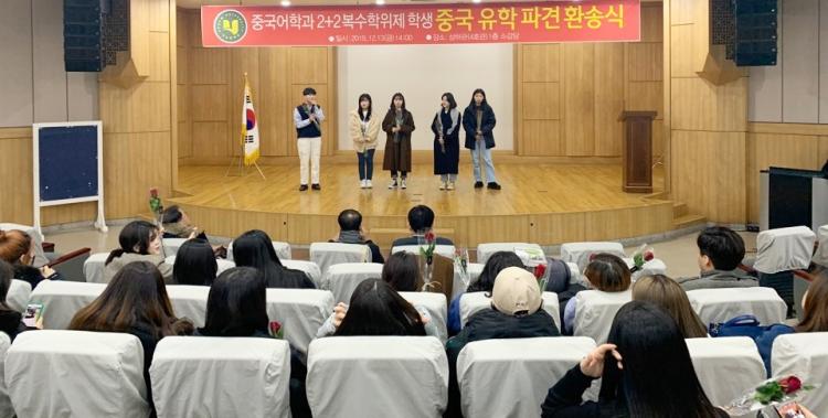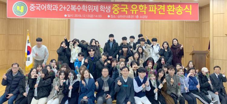 Áß±¹¾îÇаú´Â 12¿ù 13ÀÏ °æ¿µ´ëÇÐ 1Ãþ ¼Ò°´ç¿¡¼ Çаú ±³¼ö¿Í ÀçÇлýµéÀÌ Âü¼®ÇÑ °¡¿îµ¥ ¡®2+2º¹¼öÇÐÀ§Á¦¡¯ ÃëµæÀ» À§ÇØ Áß±¹ À¯Çб濡 ¿À¸£´Â 2Çгâ»ý 24¸í¿¡ ´ëÇÑ È¯¼Û½ÄÀ» °¡Á³´Ù.