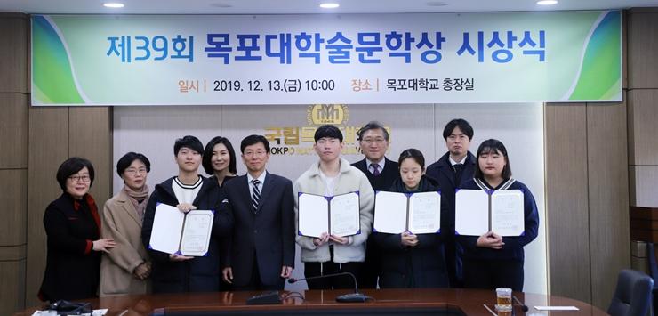 [ÅåÅå´º½º]¸ñÆ÷´ëÇб³(ÃÑÀå ¹Ú¹Î¼) ½Å¹®¹æ¼Û»ç(ÁÖ°£±³¼ö ¾È¹ÌÇö)°¡ ÁÖÃÖÇÑ ¡®Á¦39ȸ ¸ñÆ÷´ë Çмú¹®Çлó Çö»ó°ø¸ð ½Ã»ó½Ä¡¯ÀÌ Áö³ 12¿ù 13ÀÏ ´ëÇк»ºÎ ÃÑÀå½Ç¿¡¼ ¿·È´Ù°í ¹àÇû´Ù.