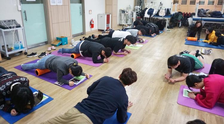 À̳¯ ÇÁ·Î±×·¥Àº ¹°¸®Ä¡·áÇаú, ÀÛ¾÷Ä¡·áÇаú, ½ºÆ÷Ã÷·¹ÀúÇаú Çлý 43¸íÀÌ Âü¿©ÇßÀ¸¸ç, CLX¿Í Æû·Ñ·¯¸¦ Ȱ¿ëÇÏ¿© ´Ù¾çÇÑ ±Ù·Â°È¿îµ¿, °æÁ÷µÈ ±ÙÀ°ÀÇ ÀÌ¿Ï ¹× ½Ç¹«Áß½ÉÀÇ À̷аú ½Ç½À µîÀ¸·Î ÃÑ10½Ã°£ µ¿¾È ÁøÇàµÆ´Ù.