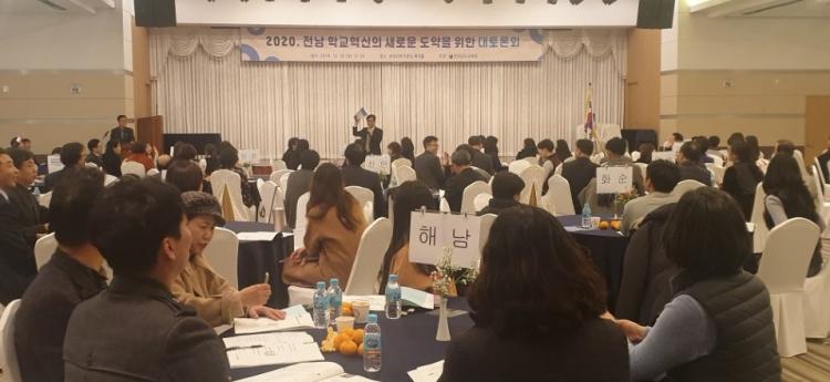 [ÅåÅå´º½º]Àü¶ó³²µµ±³À°Ã»(±³À°°¨ Àå¼®¿õ)ÀÌ 12¿ù 18ÀÏ(¼ö) º¸¼º´ÙºñÄ¡Äܵµ¿¡¼ ±³À°°øµ¿Ã¼ ±¸¼º¿ø µî 200¿© ¸íÀÌ Âü¼®ÇÑ °¡¿îµ¥ Çб³Çõ½ÅÀÇ »õ·Î¿î µµ¾àÀ» À§ÇÑ ¡®2020. Àü³² Çб³Çõ½Å ´ëÅä·Ðȸ¡¯¸¦ °¡Á³´Ù.