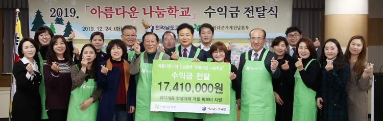 [ÅåÅå´º½º]¾Æ¸§´Ù¿î°¡°Ô Àü³²º»ºÎ(°øµ¿´ëÇ¥ ÀÌ»ó·ü¡¤¹Ú¼ÒÁ¤)°¡ 24ÀÏ(È) Àü¶ó³²µµ±³À°Ã»(±³À°°¨ Àå¼®¿õ)¿¡¼ ¿ÃÇØ ÁøÇàÇÑ ³ª´® ÇÁ·ÎÁ§Æ® ¡®¾Æ¸§´Ù¿î³ª´®Çб³¡¯ÀÇ ¼öÀͱÝÀ» Àü´ÞÇß´Ù.