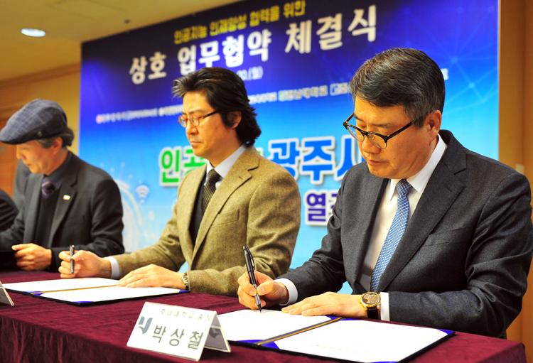 À̳¯ Çù¾à¿¡¼´Â °¢ ±â°ü°ú ´ëÇеéÀÌ ¡®ÀΰøÁö´É Á߽ɵµ½Ã ±¤ÁÖÀÇ ÀÎÀ縦 ¼ºÀå½ÃŰ´Â »ç´Ù¸®¸¦ ³õ´Âµ¥ »óÈ£ Çù·ÂÇÑ´Ù¡¯´Â ³»¿ëÀ» °ñÀÚ·Î, ÀΰøÁö´É ÀÎÀç ¾ç¼º ü°è¸¦ ±âȹ¡¤°øÀ¯ÇÏ°í ±³À° ÇÁ·Î±×·¥À» ¿î¿µÇÏ´Â µ¥ Çù·ÂÇÑ´Ù´Â ³»¿ëÀÌ ´ã°ÜÀÖ´Ù.