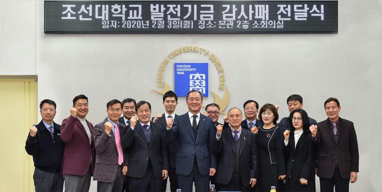 [ÅåÅå´º½º]Á¶¼±´ëÇб³(ÃÑÀå ¹Î¿µµ·)´Â 3ÀÏ ¿ÀÀü º»°ü 2Ãþ ¼ÒȸÀǽǿ¡¼ ¡®Á¶¼±´ëÇб³ ¹ßÀü±â±Ý ±âŹÀÚ °¨»çÆÐ Àü´Þ½Ä¡¯À» °³ÃÖÇϰí, Áö³ÇØ 9¿ùºÎÅÍ 12¿ù±îÁö ´ëÇÐ ¹ßÀü±â±ÝÀ» ±âºÎÇÑ °í¾×±âŹÀڵ鿡 °¨»çÆÐ¿Í ±â³äǰÀ» Àü´ÞÇß´Ù.