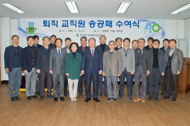 [ÅåÅå´º½º]±¤ÁÖ´ëÇб³(ÃÑÀå ±èÇõÁ¾)´Â 12ÀÏ Çб³ ÇàÁ¤°ü ȸÀǽǿ¡¼ ÅðÁ÷ ±³Á÷¿ø 6¸í¿¡ ´ëÇÑ ¼Û°øÆÐ ¼ö¿©½ÄÀ» °³ÃÖÇß´Ù.