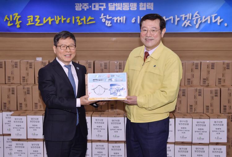 À̹ø ¹°Ç° Àü´ÞÀº Áö³ 8ÀÏ À̿뼷 ±¤ÁÖ½ÃÀå°ú ±Ç¿µÁø ´ë±¸½ÃÀåÀÌ ÀüÈÅëȸ¦ Çϸç, ±¤ÁÖ-´ë±¸ °£ ´Þºûµ¿¸Í Â÷¿ø¿¡¼ ÇÔ²² ½ÅÁ¾ Äڷγª¹ÙÀÌ·¯½º¿¡ ´ëÀÀÇÏÀڴµ¥ °ø°¨´ë¸¦ Çü¼ºÇÏ¸é¼ ÀÌ·ïÁ³´Ù.