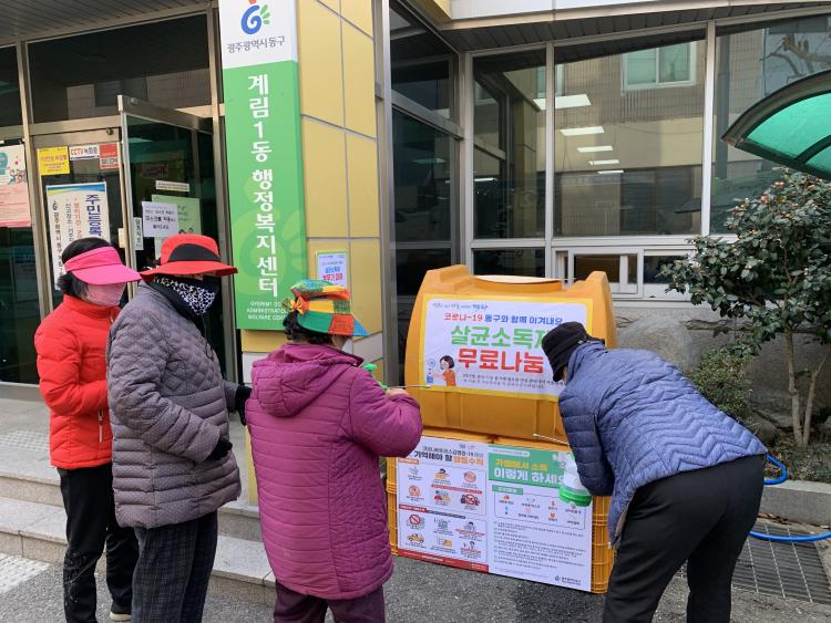 [ÅåÅå´º½º] ±¤ÁÖ µ¿±¸ °è¸²1µ¿ ÇàÁ¤º¹Áö¼¾ÅÍ(µ¿Àå ¼º°æÈÆ)´Â Äڷγª19 Áö¿ª»çȸ È®»ê¿¡ µû¸¥ ÁֹΠºÒ¾È°¨ ÇØ¼Ò¸¦ À§ÇØ Áֹε鿡°Ô »ì±Õ¼Òµ¶Á¦¸¦ ¹«·á ³ª´®ÇÏ°í ¹æ¿ª¼Òµ¶±â¸¦ ¹«»óÀ¸·Î ´ë¿©ÇÑ´Ù°í ¹àÇû´Ù.