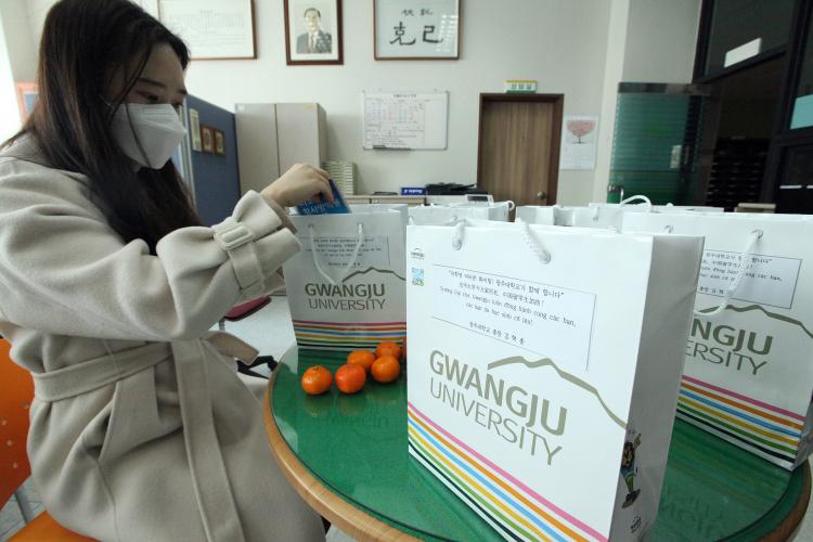 [ÅåÅå´º½º] ±¤ÁÖ´ëÇб³(ÃÑÀå ±èÇõÁ¾)´Â ¡®Äڷγª19¡¯·Î Èûµç ½Ã°£À» º¸³»°í ÀÖ´Â Áß±¹¡¤º£Æ®³² À¯Çлýµé¿¡°Ô ±èÇõÁ¾ ÃÑÀåÀÇ ÀÀ¿ø ¸Þ½ÃÁö¿Í ÇÔ²² ¸¶½ºÅ©¿Í °£½Ä µîÀ» Àü´ÞÇß´Ù°í 12ÀÏ ¹àÇû´Ù.