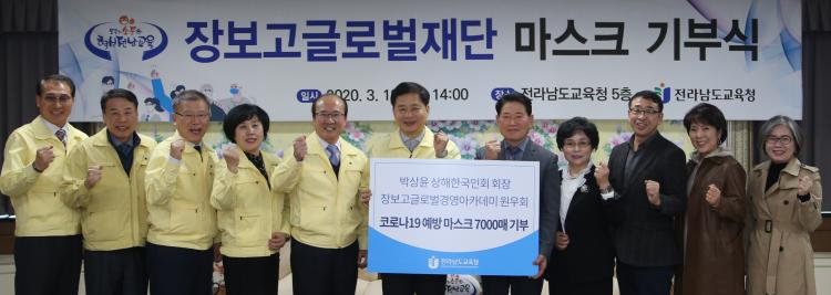 À庸°í±Û·Î¹úÀç´Ü ³» À庸°í°æ¿µ¾ÆÄ«µ¥¹Ì ±è°©¼ö ȸÀå°ú »óÇØÇѱ¹ÀÎȸ ¹Ú»óÀ± ȸÀåÀº 18ÀÏ(¼ö) ¿ÀÈÄ Àü¶ó³²µµ±³À°Ã»À» ¹æ¹®, Àå¼®¿õ ±³À°°¨¿¡°Ô Àü³² ¾ÆÀ̵éÀÇ Äڷγª19 ¿¹¹æÈ°µ¿¿¡ ½á´Þ¶ó¸ç ¸¶½ºÅ© 7,000¸Å¸¦ Àü´ÞÇß´Ù.