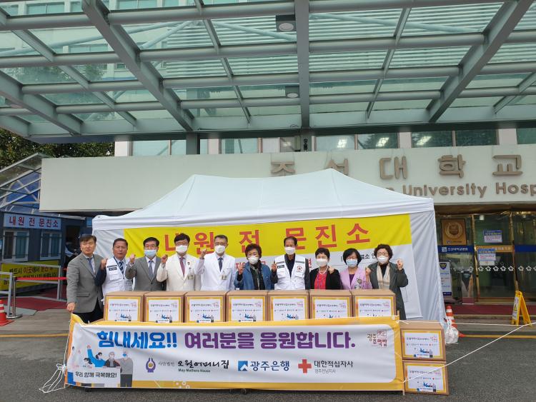 ±¤ÁÖ±¤¿ª½Ã´Â ¿À¿ù¾î¸Ó´ÏµéÀÌ ±¤ÁÖÁÖ¸Ô¹ä µµ½Ã¶ô 518°³¸¦ ¸¸µé¾î ±¹°¡ÁöÁ¤ÀÔ¿øÄ¡·áº´»óÀ» °®°í ÀÖ´Â Àü³²´ëº´¿ø, Á¶¼±´ëº´¿øÀ» ºñ·ÔÇØ °¨¿°º´Àü´ãº´¿øÀÎ ºû°íÀ»Àü³²´ëº´¿ø, ±¤Áֽø³Á¦2¿ä¾çº´¿ø µî ÃÑ 4°³ÀÇ ÀÇ·á±â°ü¿¡ µÎ Â÷·Ê¿¡ °ÉÃÄ Àü´ÞÇÑ´Ù.