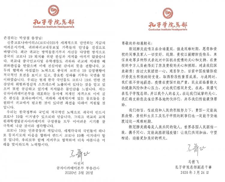 [ÅåÅå´º½º] È£³²´ëÇб³°¡ Äڷγª19 È®»êÀ¸·Î ¾î·Á¿òÀ» °Þ°í ÀÖ´ø Áß±¹¿¡ 1¸¸ÀåÀÇ ¹æ¿ª¸¶½ºÅ© ¡®KF94¡¯¸¦ ±âÁõÇѵ¥ ´ëÇØ, Áß±¹ °øÀÚÇпøÃѺΰ¡ ¹Ú»óö È£³²´ëÇб³ ÃÑÀå¿¡°Ô °¨»ç Àλ縦 ´ãÀº ¼½ÅÀ» º¸³»¿Ô´Ù.