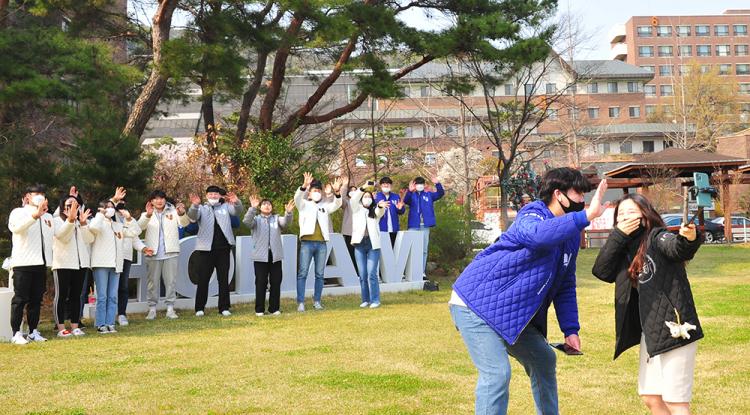 [ÅåÅå´º½º] È£³²´ëÇб³(ÃÑÀå ¹Ú»óö)°¡ Äڷγª19·Î ºñ´ë¸é(¿Â¶óÀÎ)¼ö¾÷À» ¿À´Â 4¿ù 24ÀϱîÁö Ãß°¡ ¿¬ÀåÇÑ °¡¿îµ¥, º½²ÉÀÌ ¸¸°³ÇÑ Ä·ÆÛ½º °÷°÷À» ¼Ò°³ÇÏ´Â ¡®¿Â¶óÀÎ ¾ËÂ¥½ºÄð¡¯À» ¸¶·ÃÇØ ½ÅÀÔ»ýµé¿¡°Ô ¡®À§·ÎÀÇ º½ ¼±¹°¡¯À» °Ç³Þ´Ù.