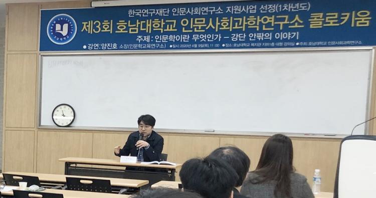 À̳¯ ÄÝ·ÎŰ¿ò¿¡¼´Â ¾çÁøÈ£ ¼ÒÀå(Àι®Çб³À°¿¬±¸¼Ò)ÀÌ ¡®Àι®ÇÐÀ̶õ ¹«¾ùÀΰ¡-°´Ü ¾ÈÆÆÀÇ À̾߱⡯¸¦ ÁÖÁ¦·Î ¹ßÇ¥Çß´Ù.