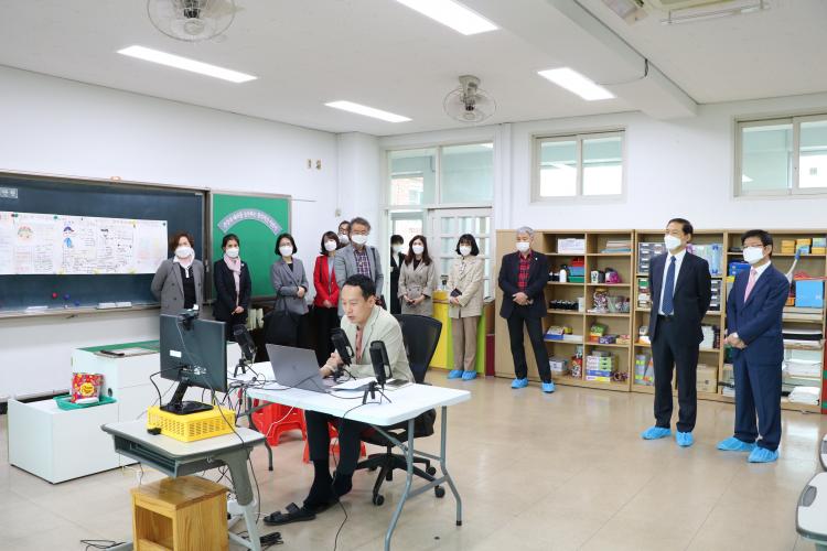 ±¤ÁÖ±³À°´ëÇб³ ÃÖµµ¼º ÃÑÀåÀÌ ¿Â¶óÀÎ ½Ö¹æÇâ È»ó¼ö¾÷À¸·Î °³ÇÐÀ» ¸ÂÀÌÇÑ ±¤Áֺμ³ÃÊÀÇ ¼ö¾÷À» °Ý·ÁÇϱâ À§ÇØ ¹æ¹®Çß´Ù.
