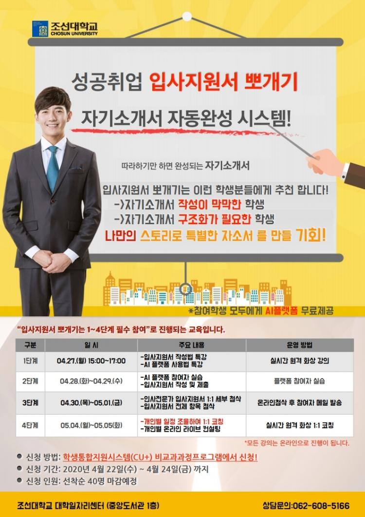 [ÅåÅå´º½º]Á¶¼±´ëÇб³ ´ëÇÐÀÏÀÚ¸®¼¾ÅͰ¡ Ãë¾÷À» ÁغñÇÏ´Â Á¶¼±´ëÇб³ ÀçÇлý ¹× Á¹¾÷»ýÀ» ´ë»óÀ¸·Î ÀΰøÁö´É(AI) Ç÷§ÆûÀ» Ȱ¿ëÇÑ ÀÔ»çÁö¿ø¼ Áö¿ø ÇÁ·Î±×·¥À» ¿î¿µÇØ ´«±æÀ» ²ø°í ÀÖ´Ù.