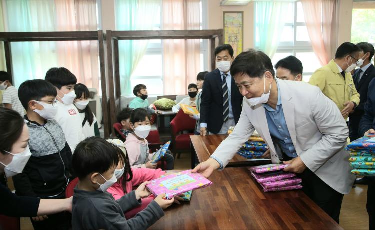 Àå¼®¿õ ±³À°°¨Àº 5¿ù 4ÀÏ(¿ù) ¸ñÆ÷ »êÁ¤ÃʵîÇб³¿Í ¼ºÎÀ¯Ä¡¿øÀ» ¹æ¹®, ¿Â¶óÀÎ °³ÇÐ ±â°£ Áß ±ä±Þ µ¹º½±³½Ç¿¡ Âü¿©Çϰí ÀÖ´Â ¾î¸°À̵鿡°Ô ÃàÇÏ Àλ縦 °Ç³×°í ±³Á÷¿øµéÀ» °Ý·ÁÇß´Ù.