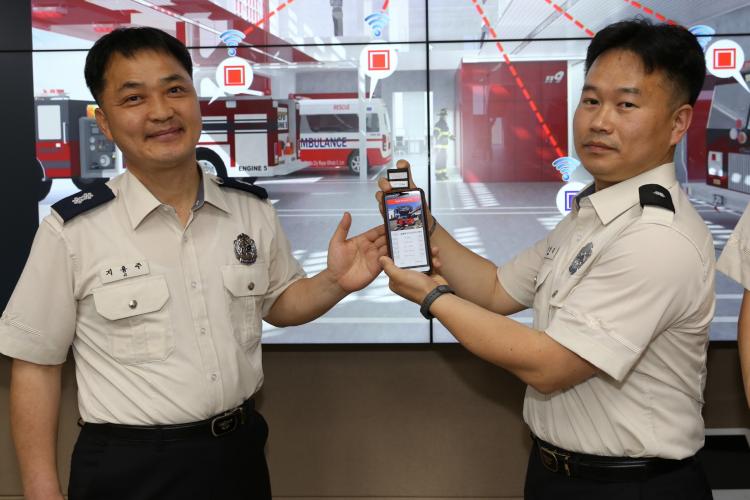 µ¿ºÎ¼Ò¹æ¼ ¹ßÇ¥ÀÚ·Î ³ª¼± Áö¿ëÁÖ ¼Ò¹æ°æÀº ¡®»ç¹°ÀÎÅͳÝ(IOT) ±â¹Ý ¼Ò¹æÀåºñ°ü¸®½Ã½ºÅÛ¿¡ °üÇÑ ¿¬±¸¡¯¸¦ ÁÖÁ¦·Î ½º¸¶Æ®ÆùÀ» Ȱ¿ëÇÑ ÀûÀçÀû¼Ò¿¡ ¸Â´Â ¼Ò¹æÀåºñ °ü¸® ¹æ¾ÈÀ» ¹ßÇ¥ÇØ ½É»çÀ§¿øµé·ÎºÎÅÍ È¿°ú¼º, ½Ç¿ë¼º, ¿Ï¼ºµµ¿¡¼ ³ôÀº Á¡¼ö¸¦ ¹Þ¾Ò´Ù.
