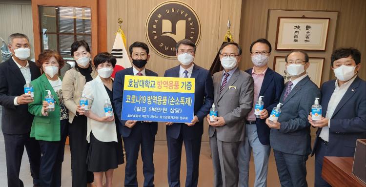 CHAMP(China advanced management Program) 5±â À±¿µÃ¶ ¿ø¿ìȸÀå°ú ÀüÇö¾Æ ¼ö¼®ºÎȸÀå, ±èÀçÀÓ °í¹®, Çϼ®Áß »ç¹«ÃÑÀå, ÃÖ±ÔÁ¤ °ñÇÁµ¿È£È¸ °æ±âÀÌ»ç, ÀÌÇö¹Ì °ñÇÁµ¿È£È¸ Ãѹ« µî¿ø¿ìȸ ÀÓ¿øµéÀº À̳¯ ¹Ú»óö È£³²´ëÇб³ ÃÑÀåÀ» ¿¹¹æÇÏ°í ¼Õ ¼Òµ¶Á¦ 17¹Ú½º µî 500¸¸¿ø »ó´çÀÇ Äڷγª19 ¹æ¿ª¹°Ç°À» ±âÁõÇß´Ù.