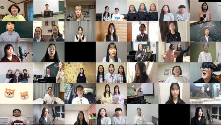 ¡®¿Â¶óÀÎ °¡»óÇÕ⡯Àº À½¾Ç ±³»ç¿Í ÇлýÀÌ Á÷Á¢ ³ìÀ½ÇÑ °¡À̵å À½¾ÇÀ» ¿Â¶óÀÎÀ¸·Î Á¦°øÇϸé Çлý‧±³Á÷¿ø‧µ¿¹® µîÀÌ ±× À½¾Ç¿¡ ¸ÂÃç °¢ÀÚ ÀÚ¸®¿¡¼ ³ë·¡¸¦ ºÎ¸£´Â ¿µ»óÀ» ¸ð¾Æ ÇÕâÀÌ ¿Ï¼ºµÇ´Â ÇüÅ·ΠÀÌ·ïÁ³´Ù. ÀÌ Çà»ç¿¡ Âü¿©ÇÑ ÇÑ ÇлýÀº ¡°Áý¿¡¼ È¥ÀÚ ³ë·¡¸¦ ºÎ¸£´Â °ÍÀÌ ³¸¼³°í ºÎ²ô·´±âµµ ÇßÁö¸¸, ÇÕâÀÌ ¿Ï¼ºµÇ°í ³ª´Ï ÇÔ²² ÇÏ´Â °ÍÀÌ ¾ó¸¶³ª ¾Æ¸§´Ù¿î °ÍÀÎÁö¸¦ ±ú´Ý°Ô µÇ¾ú´Ù¡±°í ¸»Çß´Ù.