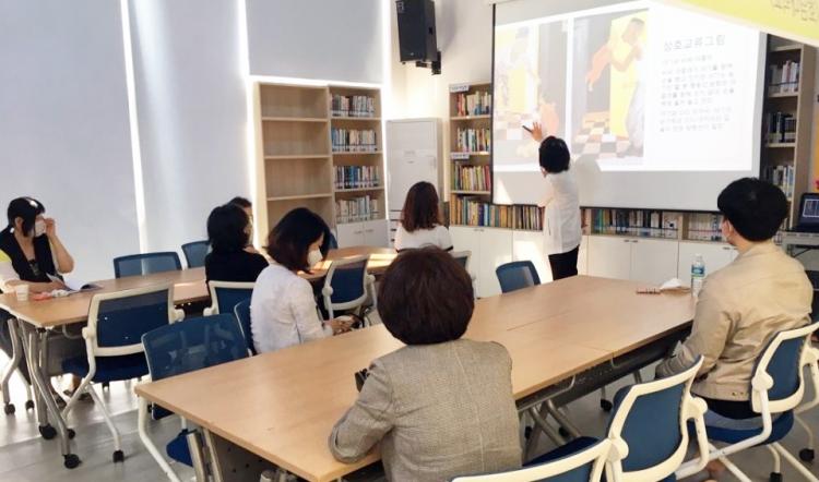 À̰¼± ±³¼ö´Â ¡®¿µ¾î ±×¸²Ã¥ Àбâ:¾Æºü¿¡°Ô º¸³»´Â ¹è¡¯ Á¦¸ñÀÇ °¿¬¿¡¼ ±×¸²Ã¥ÀÇ Ç¥Áö¿Í »ðȸ¦ ½Ã¹Îµé°ú °°ÀÌ º¸°í Àǹ̸¦ ÃßÃøÇÏ¸ç ºÐ¼®ÇÏ¸é¼ ±âÁ¸ÀÇ ±×¸²Ã¥ Àбâ¿Í´Â ´Ù¸¥ ½Ã°¢À¸·Î ±×¸²Ã¥ Àб⸦ ¼³¸íÇß´Ù.
