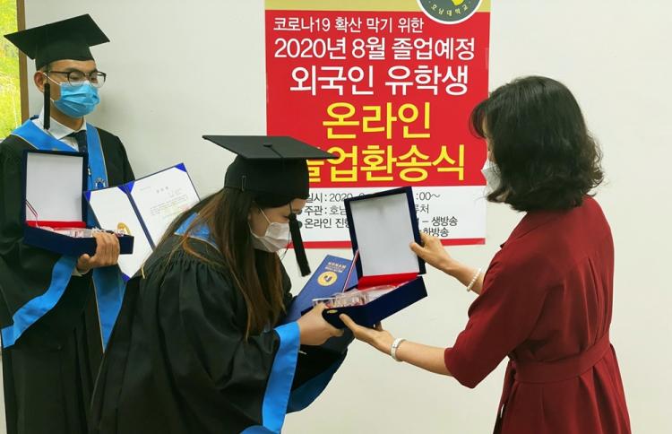 ¼Õ¿ÏÀÌ ±¹Á¦±³·ùóÀåÀº ¡°ÀÏ»ý Áß ÇÑ ¹ø»ÓÀÎ ¼ÒÁßÇÑ ´ëÇÐ Á¹¾÷½ÄÀε¥ Äڷγª19 ¶§¹®¿¡ ÇÔ²² ¼ÕÀâ°í ¾ó±¼ ¸¶ÁÖ º¸¸é¼ ȯ¼Ûȸ¸¦ ÁøÇàÇÒ ¼ö°¡ ¾ø¾î ³Ê¹« ¾ÈŸ±õ´Ù. ¾Æ½±Áö¸¸ Á¤¼º°ú µû½ºÇÑ ¸¶À½À» °¡µæ ´ã¾Æ ¿Â¶óÀÎ Á¹¾÷½ÄÀ» ÁغñÇß´Ù¡±¸ç ¡°¡®Ç³»óÀ» °ÞÀº ³ª¹«¶ó¾ß ¼Ò¸®°¡ ÁÁ´Ù¡¯¶ó´Â ¸»Ã³·³ »ç»ó ÃÊÀ¯ÀÇ Äڷγª19 »çŸ¦ Àß À̰ܳ»°í ¿ì¸® È£³²´ëÇб³ ±³¹®À» ³ª¼´Â Á¹¾÷»ý ¸ðµÎ°¡ ÈǸ¢ÇÑ ÀÎÀç·Î¼ 21¼¼±â ±Û·Î¹ú »çȸ¿¡ À̹ÙÁöÇÒ °ÍÀ» ¹Ï¾î ÀǽÉÄ¡ ¾Ê´Â´Ù¡±°í °Ý·ÁÇß´Ù.