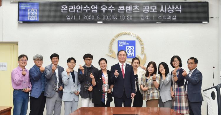30ÀÏ Á¶¼±´ëÇб³´Â ±³À°Çõ½Å¿ø E-learningÁö¿øÆÀ¿¡¼ ÁÖ°üÇÑ '2020Çг⵵ 1Çб⠿¶óÀμö¾÷ ¿ì¼öÄÜÅÙÃ÷ °ø¸ðÀü ½Ã»ó½Ä'À» °³ÃÖÇß´Ù.
