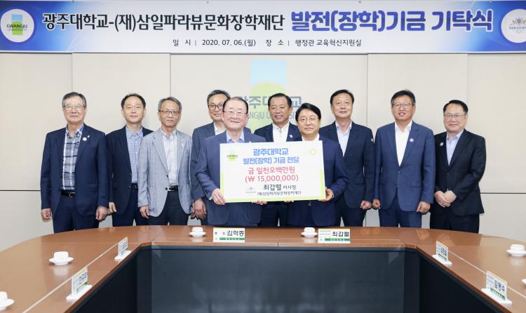 [ÅåÅå´º½º]±¤ÁÖ´ëÇб³(ÃÑÀå ±èÇõÁ¾)´Â (Àç)»ïÀÏÆÄ¶óºä¹®ÈÀåÇÐÀç´Ü ÃÖ°©·Ä ÀÌ»çÀåÀÌ Çб³ ¹ßÀü°ú Åä¸ñ¡¤°ÇÃࡤºÎµ¿»êÇаú Çлý ÀåÇÐ±Ý ¹× ¿¬±¸È°µ¿ºñ Áö¿øÀ» À§ÇÑ ÀåÇбâ±ÝÀ¸·Î 1õ500¸¸¿øÀ» ±âŹÇß´Ù°í 6ÀÏ ¹àÇû´Ù.