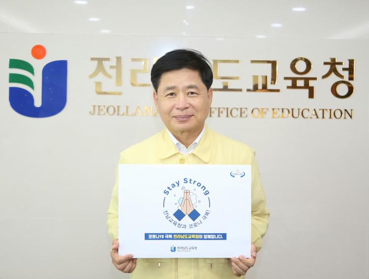 Àå ±³À°°¨Àº ÀÚ½ÅÀÇ SNS¿¡ ¡®Äڷγª19 ±Øº¹ Àü¶ó³²µµ±³À°Ã»ÀÌ ÇÔ²²ÇÕ´Ï´Ù¡¯¶ó´Â ¹®±¸°¡ ÀûÈù ¼ÕÆÖ¸» »çÁø°ú ÇÔ²² Äڷγª19 ±Øº¹À» À§ÇØ ¾Ö¾²°í ÀÖ´Â °ü°èÀÚ¿Í Àü³²µµ¹ÎÀ» ÀÀ¿øÇÏ´Â ¸Þ½ÃÁö¸¦ ³²°å´Ù.