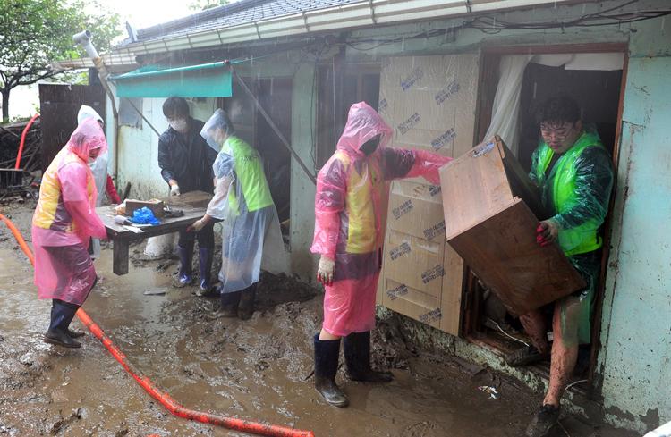 ¿ÀÈÄ¿¡´Â Á¦5È£ ÅÂdz ¡®Àå¹Ì¡¯·Î ÀÎÇØ ºñ°¡ ³»¸®´Â °¡¿îµ¥¼µµ ±¤»ê±¸ ¼Û»êµ¿ ÀϹÝÁÖÅÿ¡¼ ÈëÅÁ¹°¿¡ Âîµé°í ÁøÈëÀ¸·Î ¹ü¹÷ÀÌ µÈ Áý¿¡¼ ³ÃÀå°í¿Í °¡±¸ µî °¢Á¾ °¡Àçµµ±¸µéÀ» ²¨³» ¹°·Î ¾Ä¾î³»´Â ºÀ»çȰµ¿À» ÆîÃÆ´Ù.