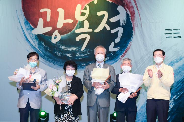 [ÅåÅå´º½º] À̿뼷 ±¤ÁÖ±¤¿ª½ÃÀåÀº 15ÀÏ ¿ÀÀü ½Ãû ´ëȸÀǽǿ¡¼ ¿¸° ¡®Á¦75Áֳ⠱¤º¹Àý °æÃà½Ä¡¯¿¡ Âü¼®ÇØ µ¶¸³ À¯°øÀÚ ¹× ³ª¶ó»ç¶û À¯°øÀÚ Ç¥Ã¢ ÈÄ ±â³äÃÔ¿µÀ» Çϰí ÀÖ´Ù./±¤ÁÖ±¤¿ª½Ã Á¦°ø