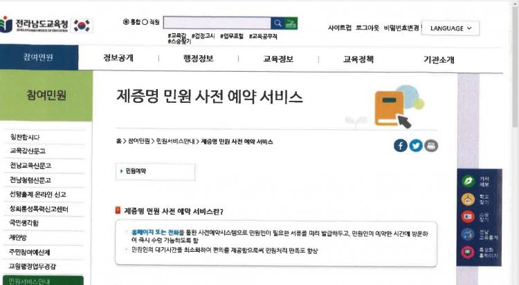 [ÅåÅå´º½º]Àü¶ó³²µµ±³À°Ã»(±³À°°¨ Àå¼®¿õ)ÀÌ Á¦Áõ¸í ¹ß±Þ ¹Î¿øÀÎÀÇ ÆíÀǸ¦ À§ÇØ ¿À´Â 9¿ù 1ÀÏ(È)ºÎÅÍ ¹Î¿ø »çÀü¿¹¾à ¼ºñ½º¸¦ °íµµÈÇÑ´Ù.