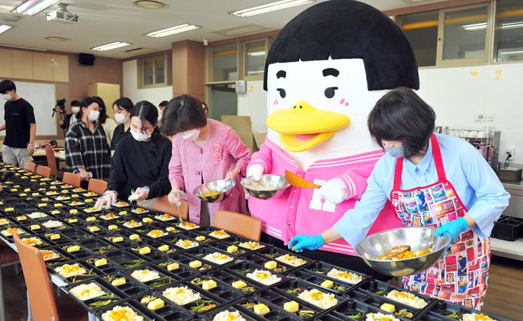 ½Äǰ¿µ¾çÇаú(ÇаúÀå ±æÁø¸ð)¿¡¼´Â ¸é¿ª ÁõÁø°ú ÇÇ·Îȸº¹ µî °Ç°°ü¸®¿¡¸¦ À§ÇØ ¿µ¾ç¼Ò°¡ dzºÎÇÏ°Ô ´ã±ä ´Ùä·Î¿î ¿µ¾ç½Ä´ÜÀ» Â¥°í, ¿Ü½ÄÁ¶¸®°úÇаú(ÇаúÀå ±è¿µ±Õ) ±³¼ö¿Í ÇлýµéÀº À̳¯ »õº®ºÎÅÍ ¹äÀ» Áþ°í À½½ÄÀ» Á¶¸®ÇÏ´Â µî öÀúÇÑ À§»ý °ü¸®·Î ¡®¸À°ú ¿µ¾çÀÌ Ç³ºÎÇÑ Çѳ¢ ½Ä»ç¡¯¸¦ ¸¸µé¾ú´Ù.