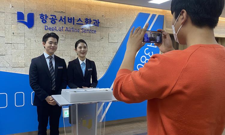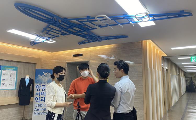 ÇÑÀÇÁø ÇаúÀå°ú À̵¿Èñ, Áø°æ¹Ì, ¹Ú¿¬¿Á, Â÷ÀÌ·¹ÀÌ ±³¼ö¿Í Á¤°¹Î ÇлýȸÀå µî 10¿©¸íÀÇ ÇлýµéÀº À̳¯ ¿ÀÈÄ 3½ÃºÎÅÍ 4È£°ü 3Ãþ Ç×°ø¼ºñ½ºÇаú¿¡¼ ¡®ºñ´ë¸é ¸éÁ¢ ²ÜÆÁ¡¯À» ÀüÇÏ´Â ÆäÀ̽ººÏ ½ºÆ®¸®¹ÖÀ» ÁøÇàÇß´Ù.